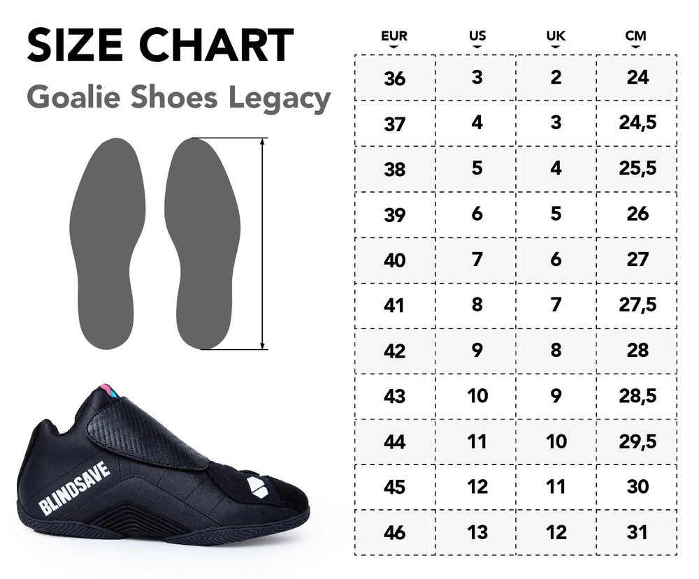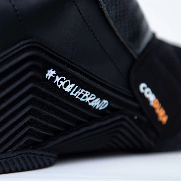The new goalie shoes are finally here! Introducing the new Legacy goalie shoes as part of the upcoming collection. Goalies put their gear including shoes through intense wear and tear, which is why our goalie shoes feature Cordura fabric to provide unmatched protection and durability, protecting you from impacts and making it comfortable to move quickly between the posts. New silicone parts on both sides and a carbon-like exterior tongue add a touch of sleekness while providing additional support and stability. Are you ready to take your game to the next level? It's time to outshine the competition. • Cordura fabric for better protection and durability • Carbon-like exterior tongue • Double stitching to ensure maximum durability • Premium lightweight material