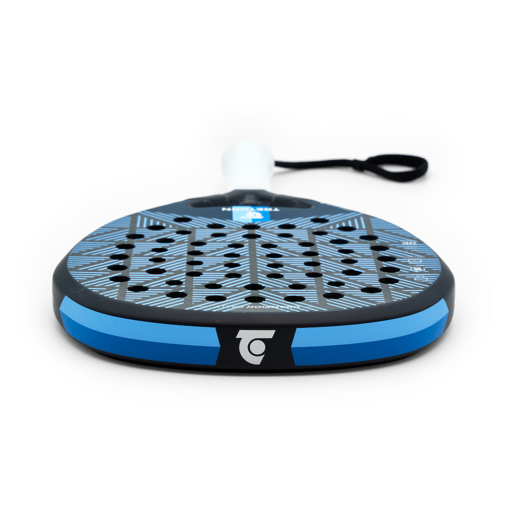 CHAMPION RALLY is a racket that provides you with maximum control. Equipped with the advanced Japanese 12K carbon fiber layer, this racket gives you an exceptional ability to deliver a deep and energetic response in your offensive play. At the same time, this layer guarantees an incredible sense of touch in the game with small margins. Whether you're executing powerful attacks or precision shots, CHAMPION RALLY offers you the support you need to master every aspect of the game. The racket's core, EVA COMFORT, provides incredible comfort, and when combined with a centered sweetspot, it delivers high precision and stability in every shot. The racket is also equipped with a DUAL-hole pattern that optimizes the racket's contact points, enhancing the ability for controlled shots even when hitting outside the racket's sweetspot. The result? Consistent control, precision, and enough speed to allow you to decide the pace of the game. Additionally, the racket features a multi-directional 3D decal, strategically designed to enhance your spin for all types of shots, bringing a new level of elegance that confuses your opponents and keeps them guessing about your next move.