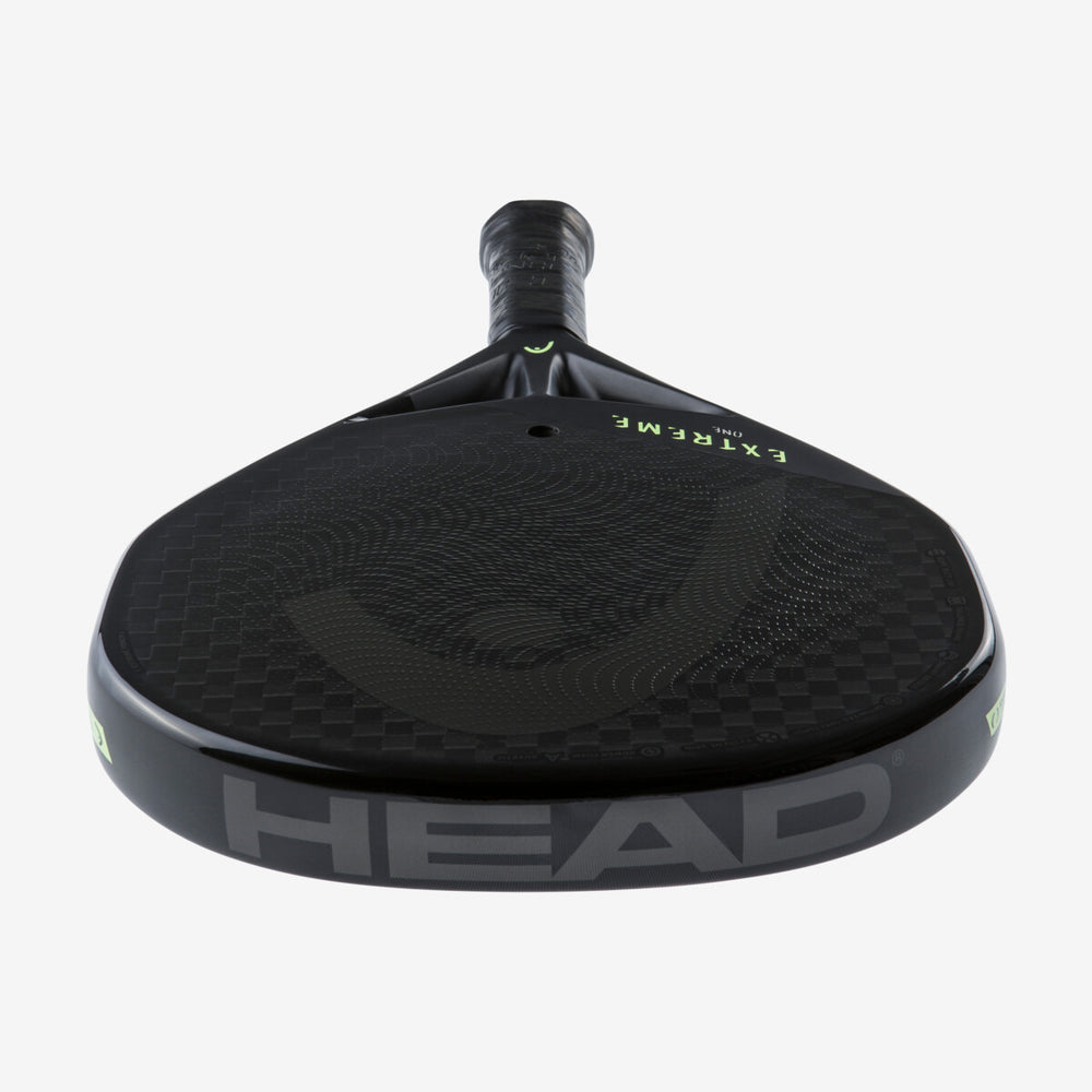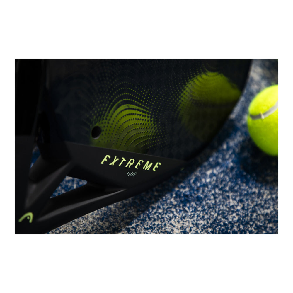 The revolutionary EXTREME ONE PADEL RACQUET is the lightest racquet in the EXTREME series; it is also the strongest, with the state-of-the-art 12K carbon see-through unique hitting surface for added durability. Made from a new, diamond-shaped mold, this racquet is lightweight, as well as powerful and aerodynamic, and lets you play with consistent spin. While the innovative Auxetic technology delivers extra power and a sensational impact feel, the Soft Butt Cap technology supplies a softer playing feel and dampens vibrations. Along with high performance, the EXTREME ONE offers a high-end, original design with a glossy and matt finish. • Revolutionary design with a unique hitting surface for extra durability • 12K carbon see-through hitting surface • Lightest and strongest racquet in the series • Power, consistent spin and aerodynamic • New, diamond-shaped mold • Soft Butt Cap technology • Auxetic technology for extra power and sensational impact feel • Original, premium design with glossy and matt finish