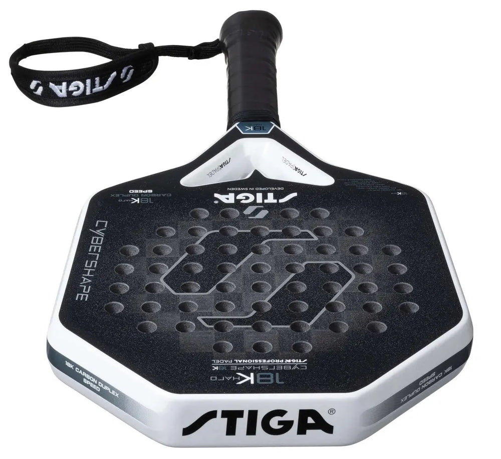 Padelracket Cybershape 18K Hard leaves nothing to chance. With this rack you get the best from all the worlds in one and the same rack. Power, control and feeling. What more can you ask for? Cybershape 18K Hard is a perfectly composed rack for those who are a experienced attack player and, just like our other Cybershape racks, have a larger, optimized hit surface and a full 20 % larger sweetspot compared to round rackets. What gets Cybershape 18K Hard to stand out besides the unique form is that it is a stiff rack that gives you good speed and control - without compromising the feeling in the ball meeting.